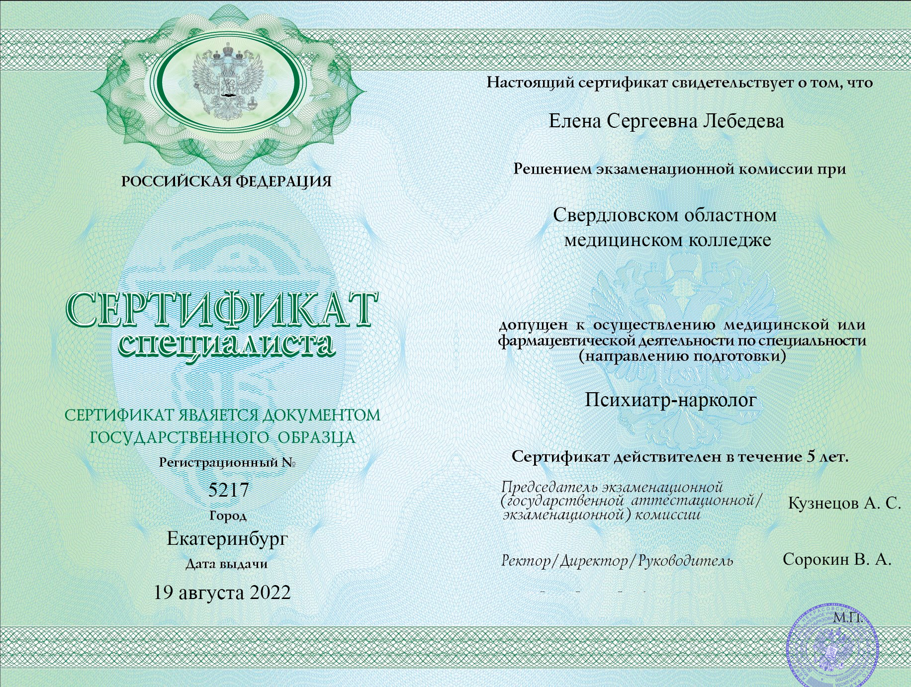 Елена Сергеевна Лебедева врач нарколог клиники доктора Стукаловой в Старонижестеблиевской